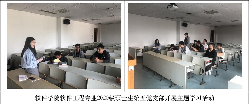 10月15日,软件工程专业2020级硕士生第五党支部在软件学院N208开展了主题学习活动。会前,每位党员同志就已自行观看全国抗击新冠肺炎疫情表彰大会相关报道,认真学习总书记讲话和会议内容。会上,支部党员交流互动。支部宣传委员辛浩雨说,面对突如其来的疫情,党中央统揽全局、果断决策,及时有效的进行疫情防控阻击。全国人民同舟共济、众志成城,广大党员干部冲锋在前,充分发挥了“每一名党员就是一面旗帜,每一个支部就是一座堡垒”的精神,这些都生动地展示出了中国共产党领导和中国特色社会主义制度的显著优势。