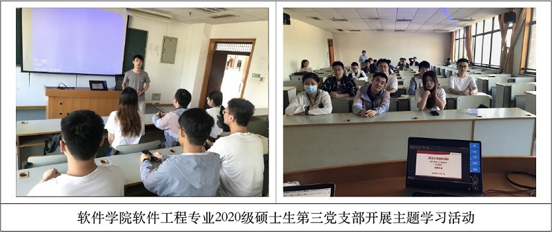 10月14日,软件工程专业2020级硕士生第三党支部在软件学院教学楼N210开展了主题学习活动。支部书记刘俊麟带领支部全体党员学习了青年大学习第十季第一期课程——习近平总书记关于坚决打赢脱贫攻坚战的重要论述,以及总书记在全国抗击新冠肺炎疫情表彰大会上的重要讲话。支部党员周楚程分享了他的心得:学习了总书记的重要讲话,我感受到我们作为中国共产党的一员,一定要学习抗疫英雄们的精神,为实现中华民族伟大复兴的中国梦作出贡献。