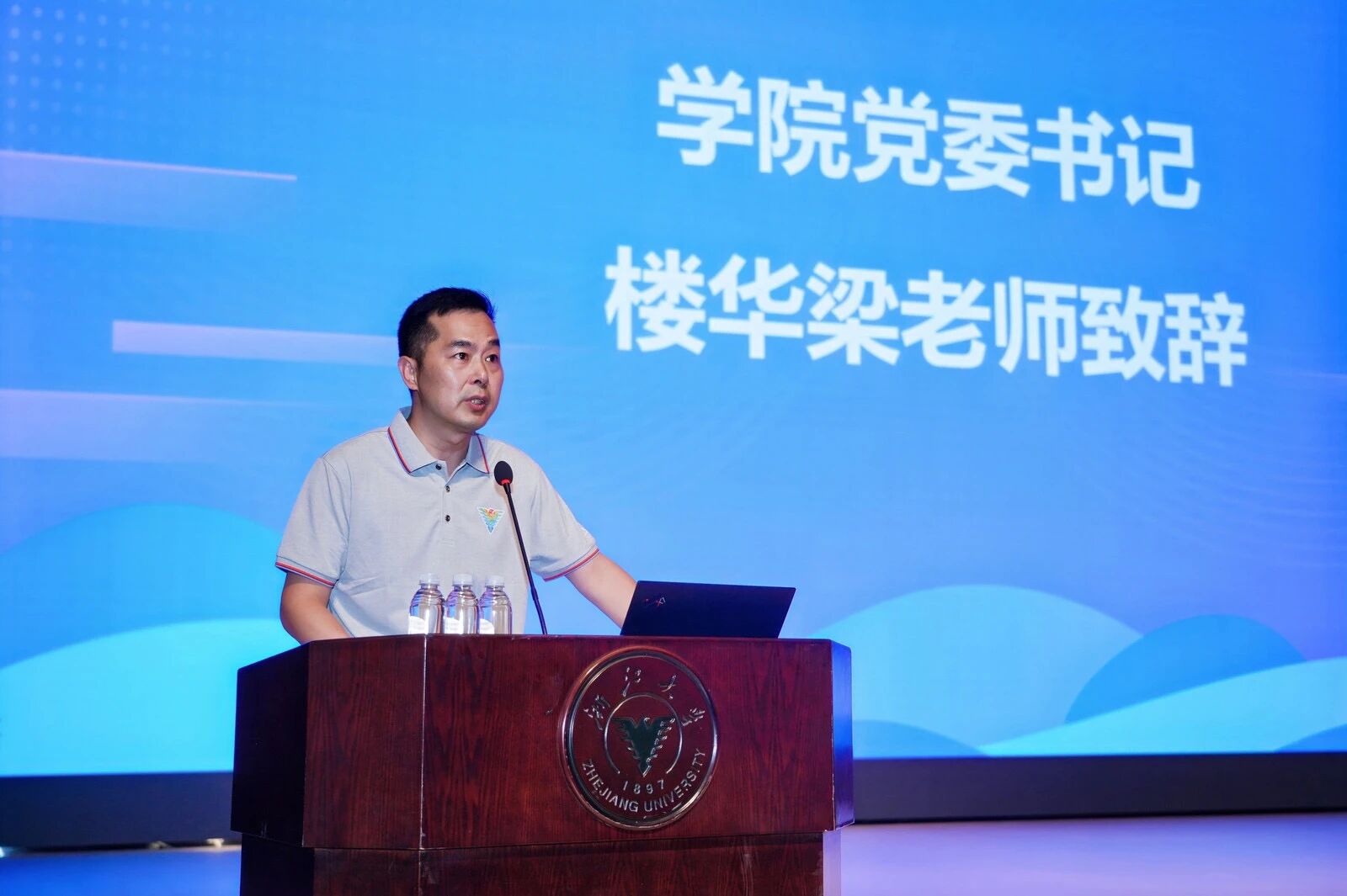 9月14日晚,浙江大学软件学院2025级研究生开学典礼暨院长报告会在启真大讲堂举行。软件学院院长尹建伟、党委书记楼华梁,宁波浙江大学校友会会长毛磊,软件学院副院长陈丽,宁波国际科创中心副主任余华金,软件学院院长助理张旭鸿,永新光学研究院副院长邱元芳等领导和嘉宾出席典礼。学院研究生德育导师、相关科室负责人、师生代表以及2025级全体研究生新生共同参加。典礼由党委副书记、纪委书记苏腾主持。