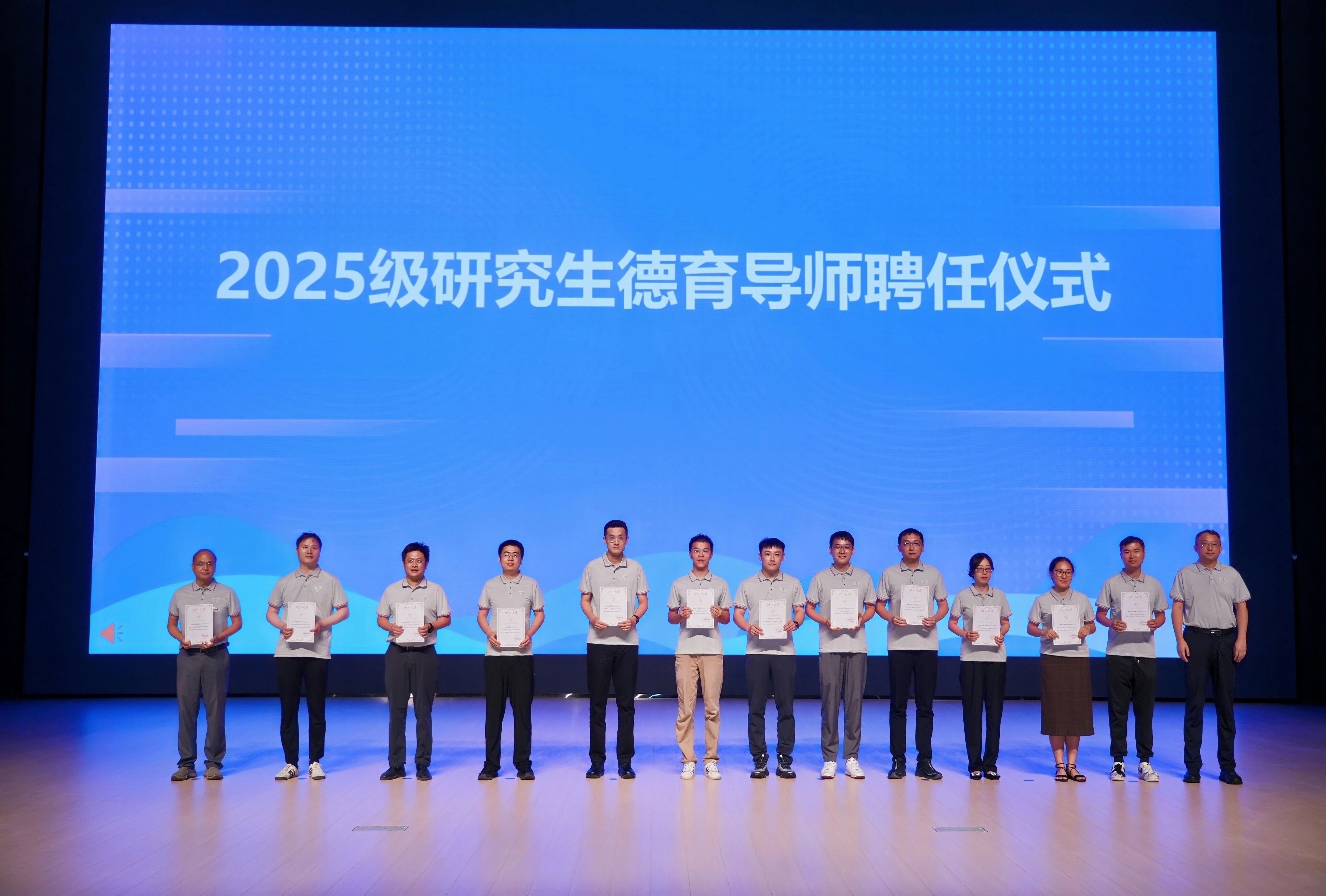 尹建伟院长为2025级研究生德育导师柳栋桢、吕嘉美、张金山、吴洋洋、邓达臻、彭思达、王皓波、蔡钰祥、潘小丹、赵斌、张宁豫、周赟湛等颁发聘书,期望各位导师未来能成为同学们的引路人。