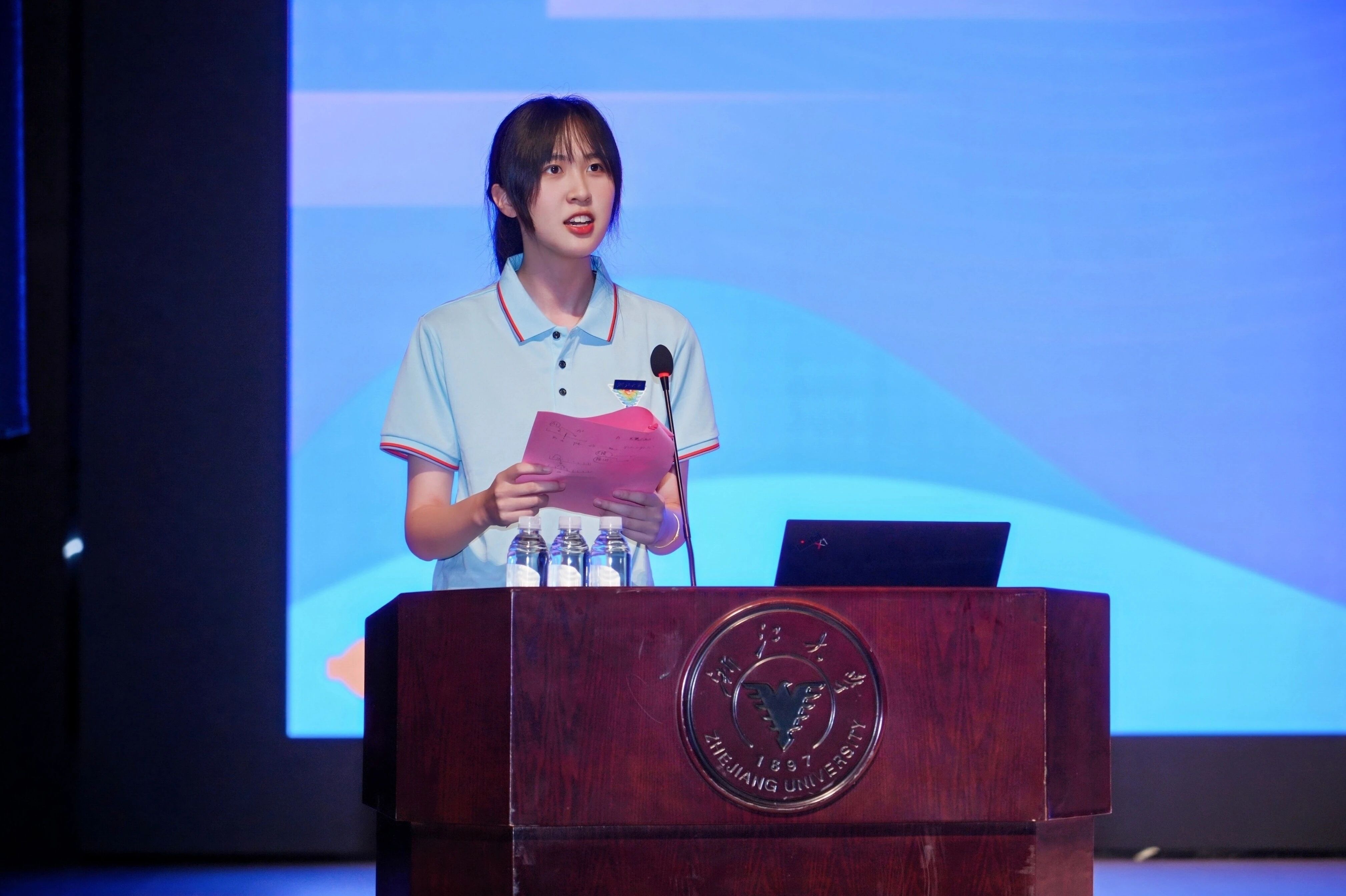 全场师生齐声高唱《浙江大学校歌》,开学典礼在歌声中圆满结束。