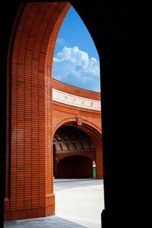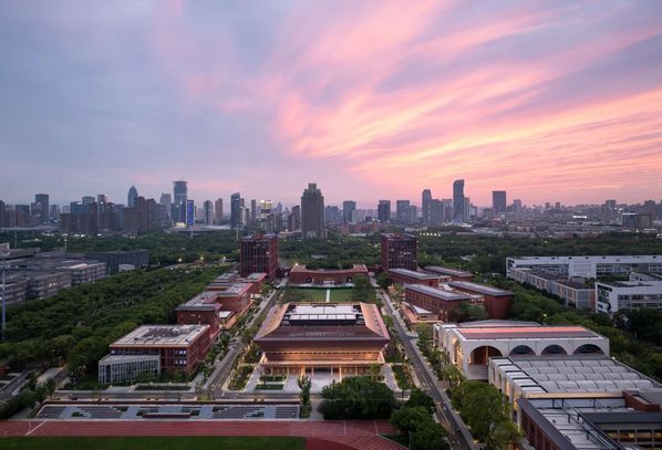 校门,不止是进出的通道,更是一所院校的精神凝练。回溯烽火年代,校门曾守护着求是书院中一点民族文化的星火;而今日,院校与城市早已走向和合共生。园区的西大门,以一道U形券廊,将金黄银杏与青青草坡还予城市,也将街对面的院士公园纳为园区的自然延伸。而环廊间,校史展览将百年根脉与“树我邦国”的担当,轻声诉诸城市的日常。