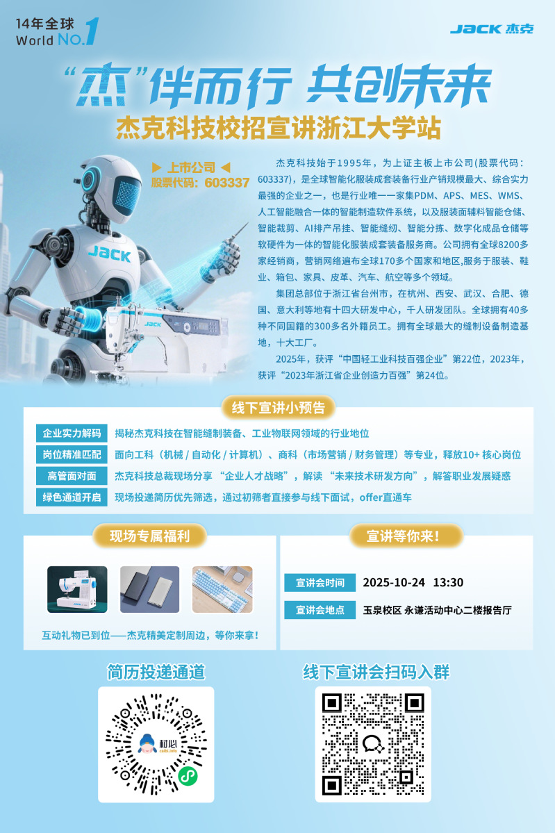 杰克科技股份有限公司-浙江大学玉泉校区宣讲会将于10.24 下午举行
