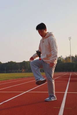 有力的脚步踏在跑道上。