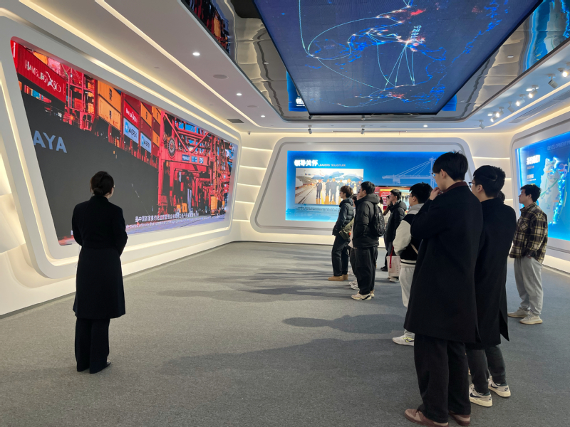 下午,师生一行赴舟山甬舟集装箱码头有限公司,实地参观智慧展厅与港口作业现场,深入了解自动化码头运作、智慧物流系统及绿色港口建设等方面的前沿实践与创新成果。